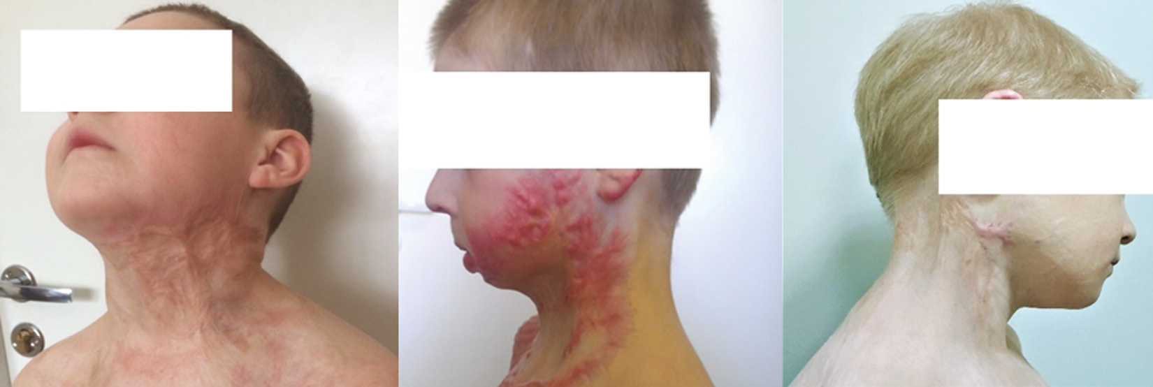 Fig. 4. Cervical skin region in children after early surgical treatment: excision and late grafting
