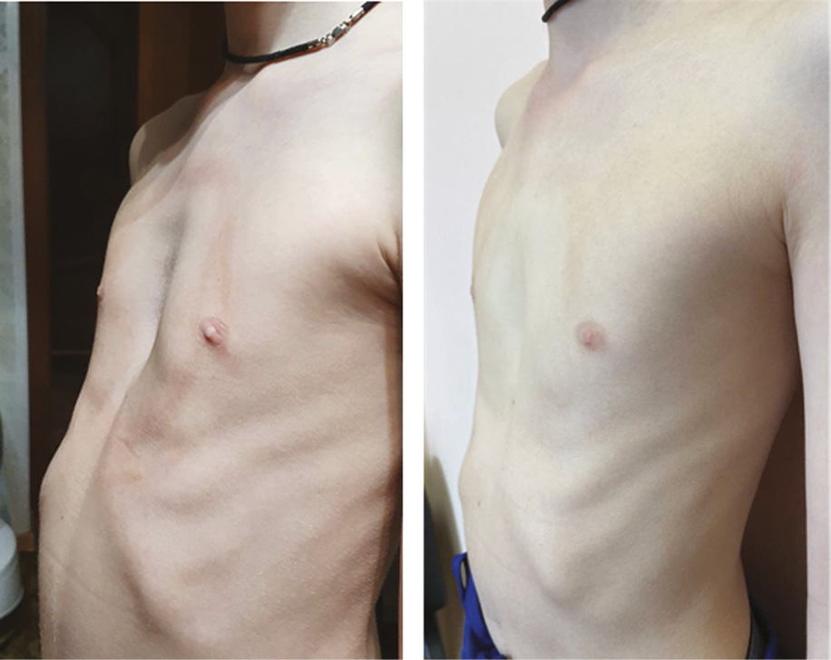 Воронкообразная деформация грудной клетки (ВДГК) — это наиболее часто встречающийся порок развития передней грудной стенки, частота встречаемости 1 : 400–1000 [1]. В зависимости от степени тяжести может вызывать лишь косметический дефект или кардиореспираторные нарушения различной степени [2]. Выраженная деформация также может оказаться причиной депрессивных состояний, замкнутости, ограничения активного образа жизни, что особенно значимо в пубертатном периоде.