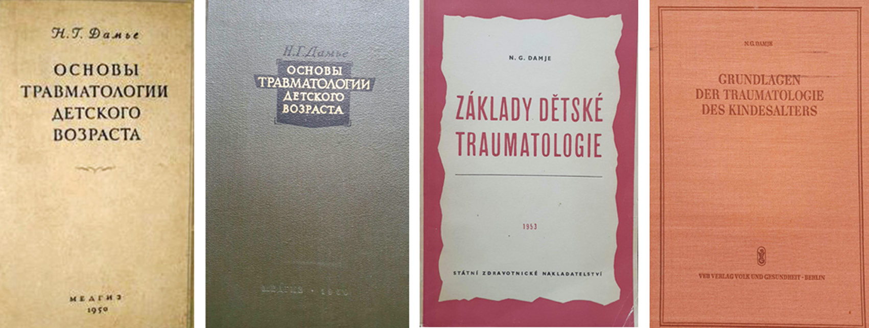 В 1950 г. в свет вышло первое издание руководства Н.Г. Дамье „Основы травматологии детского возраста“ тиражом 15 000 экземпляров [16], а в 1960 г. — второе, переработанное и дополненное автором [17]. В домашнем архиве семьи Н.Г. Дамье сохранились машинописные копии отзывов рецензентов на обе книги, представленные в издательство. Рецензентами были выбраны авторитетные специалисты, внесшие значительный вклад в отечественную травматологию: к первому изданию — заслуженный деятель науки РСФСР профессор В.Г. Гориневская [18], ко второму — член-корреспондент АМН СССР, профессор В.Д. Чаклин [19].