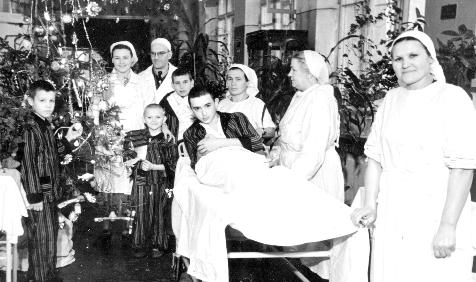 Новый этап работы в больнице начался с приходом главного врача Маи Константиновны. Бухрашвили в 1963 г., взяв на себя заботу о давно необходимой реконструкции и обеспечении больницы, она поддерживала Н.Г. Дамье в оптимизации лечебной работы, участии врачей и научной деятельности. В небольшом стационаре — 175 коек, 4 отделения — все были на виду. В больнице сложилась домашняя атмосфера, все вместе готовились и отмечали праздники (рис. 13, 14), участвовали в благоустройстве больницы, помогали в сложных жизненных ситуациях. Но при этом не снижалась требовательность в отношении выполнения профессиональных обязанностей.