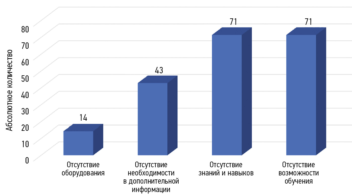 Рис. 6. Причины низкого уровня приверженности к методам ультразвуковой диагностики в педиатрических отделениях реанимации и интенсивной терапии