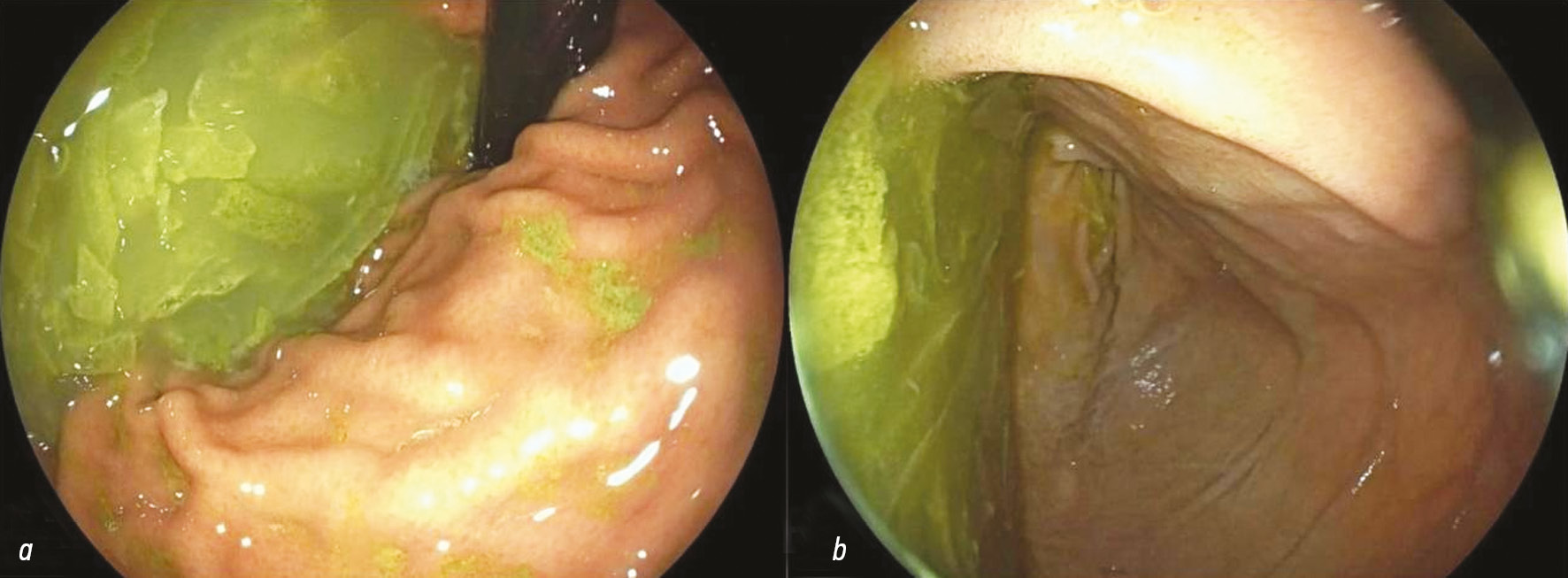 Fig. 2. Gastroduodenoscopy: a — stomach; b — duodenum